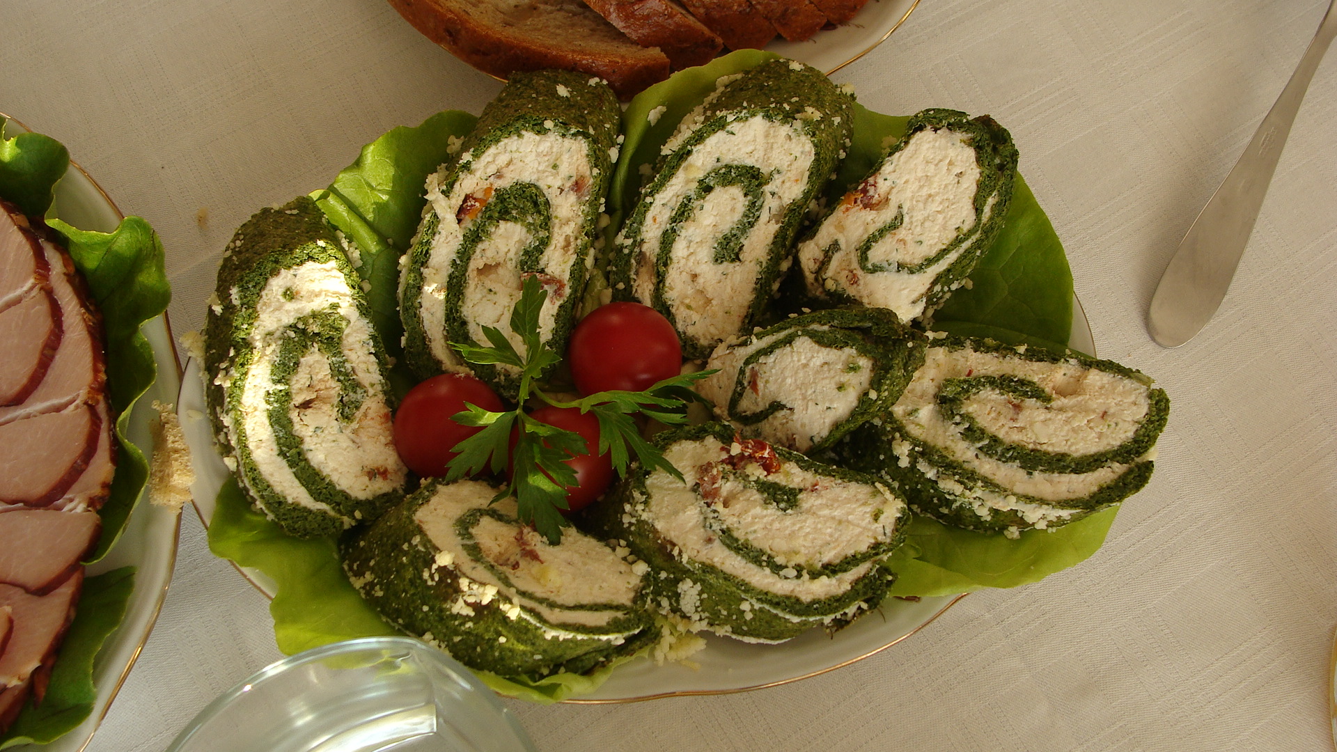 Rolada szpinakowa http://asia-white-kitchen.blogspot.com/ ... akowa.htmlPonieważ mąż nie lubi ryb , zamiast wędzonego łososia dodałam suszone pomidory w zalewie i miałam dodać dla koloru paprykę czerwoną i żółtą, ale zapomniałam