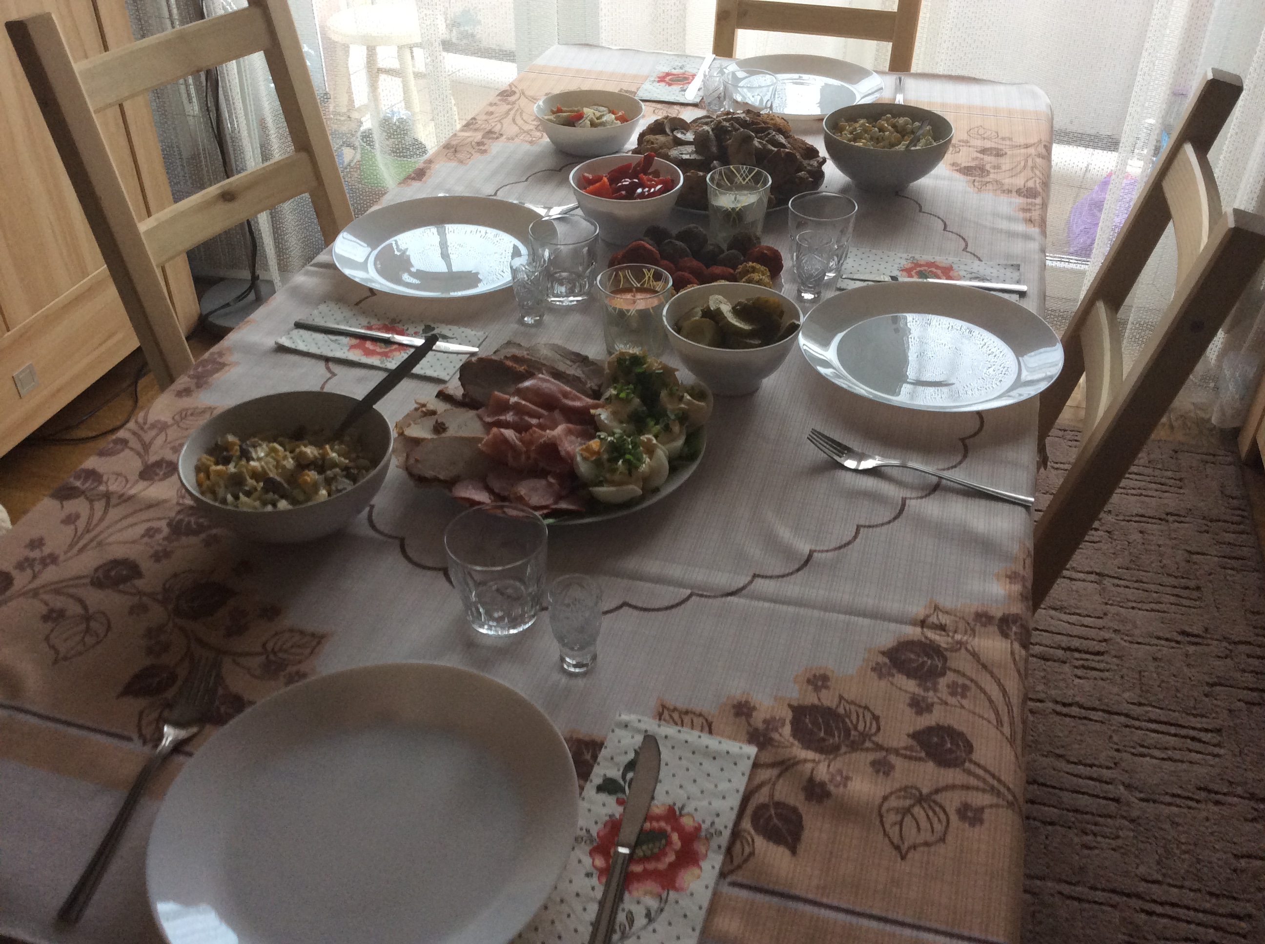 Tak jeszcze z daleka....trochę niedoprasowany obrus ale nie mam juź siły. Teraz klapnę i będę jeść :D