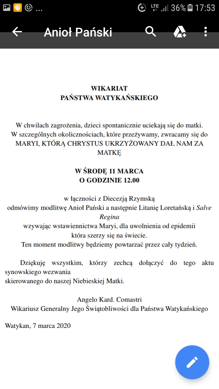 Prośba o modlitwę z Watykanu ....